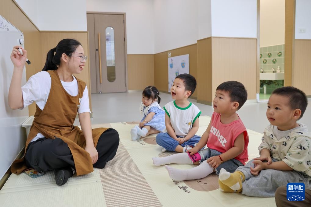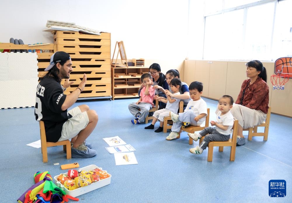 4月17日,在深圳市福田区梅林街道普惠性托育机构“青梅园”,外籍老师与孩子们互动。新华社记者 毛思倩 摄